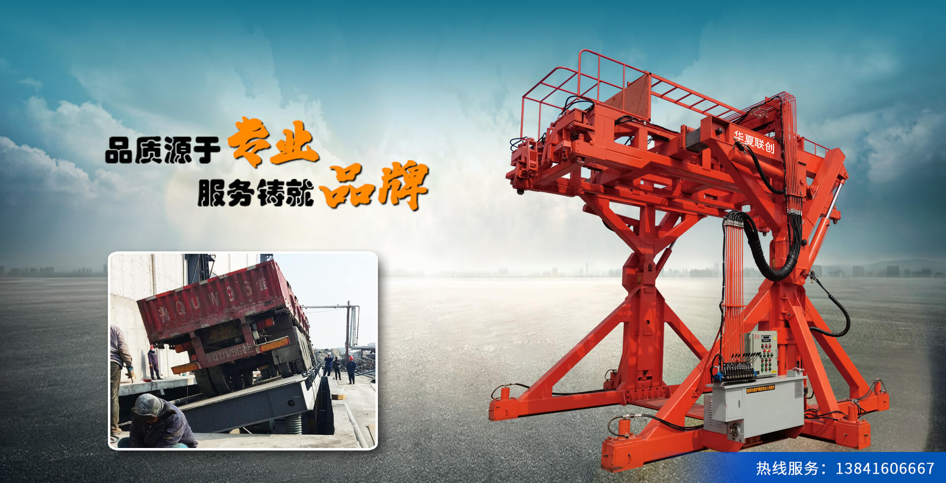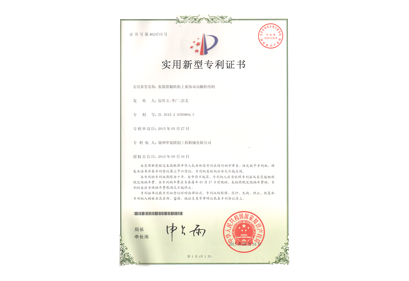 華夏聯創集團創始于2005年,憑借公司品牌優勢、技術優勢、人才優勢、資金優勢,以數十年磨一劍的博觀約取、厚積薄發,自主研制生產具有先進水平的集裝箱翻轉機,翻轉平臺,智能化液壓翻板汽車裝卸。為用戶提供各種集裝箱裝卸設備、火車集裝箱、船舶裝卸機等自動裝卸設備。公司逐步形成了以工程機械為核心、擁有自主知識產權、在國內具有一定影響力的企業。華夏聯創公司自成立以來,產品銷量持續高速增長,實現了跨越式發展,已經成為行業知名品牌。